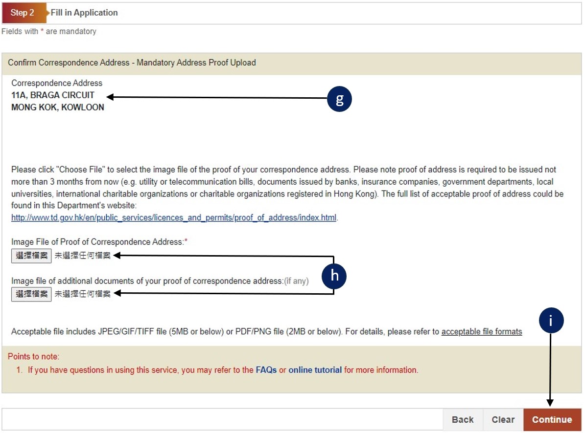Click the "Choose File" button to locate the address proof image file and any additional document files.