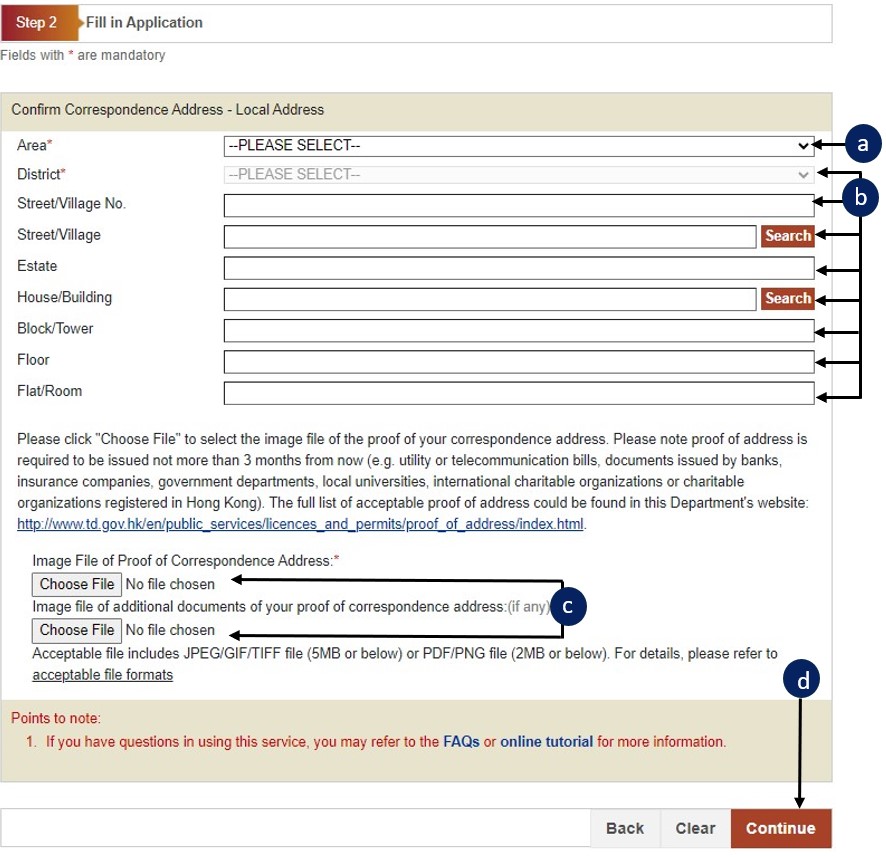 Enter correspondence address details (please enter one of Street/Village, Estate or House/Building; enter Street/Village if you have entered the Street/Village No.)