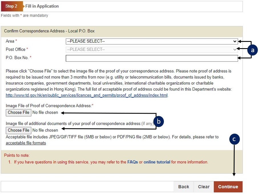 Confirm Correspondence Address - Local P.O. Box: