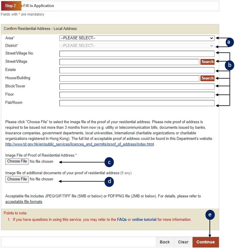 Enter address details (please enter one of Street/Village, Estate or House/Building; enter Street/Village if you have entered the Street/Village No.)