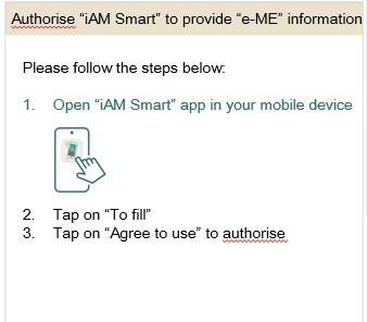 Follow the instructions to authorize “iAM Smart” to provide “e-ME” information.