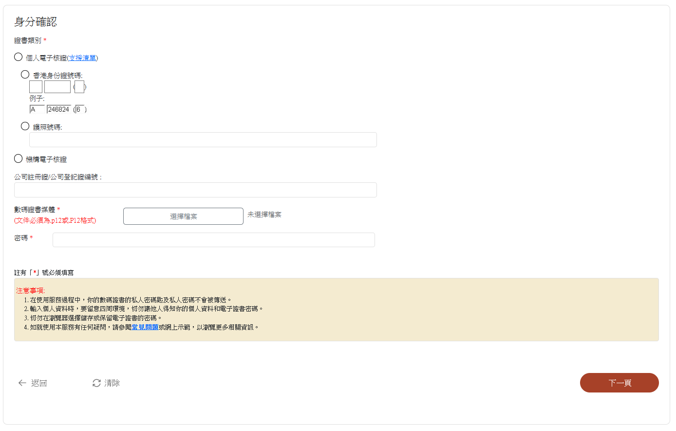 輸入香港身份證號碼/護照號碼/公司註冊證/公司登記證編號