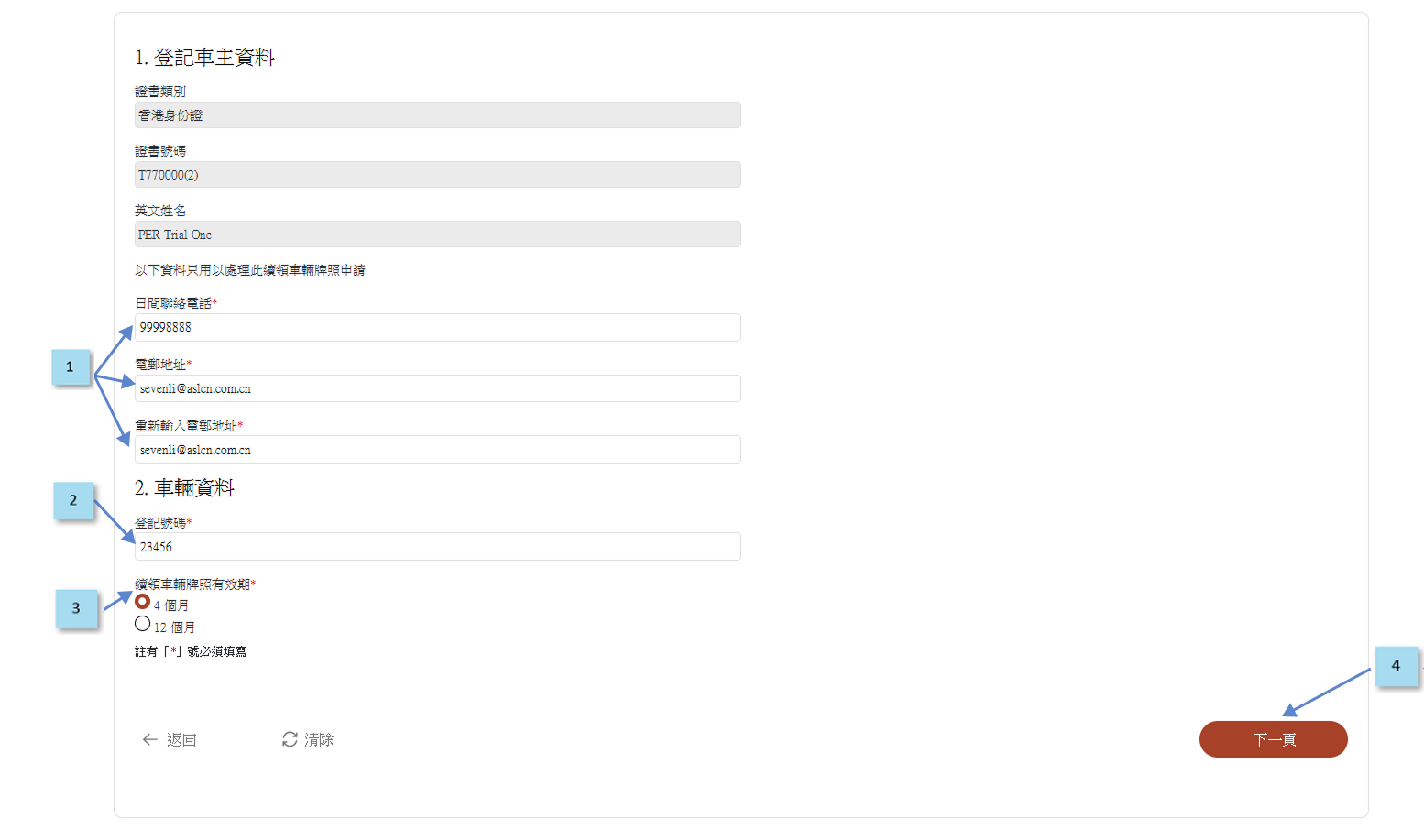 2. 輸入“車輛登記號碼”
