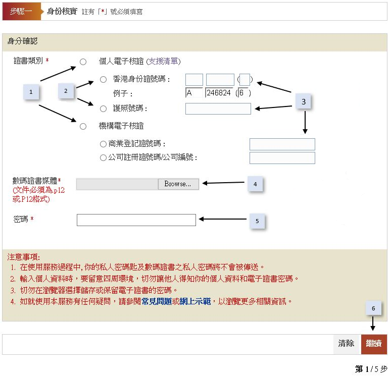 如你選擇個人電子核證,請填入香港身份證號碼或護照號碼。
