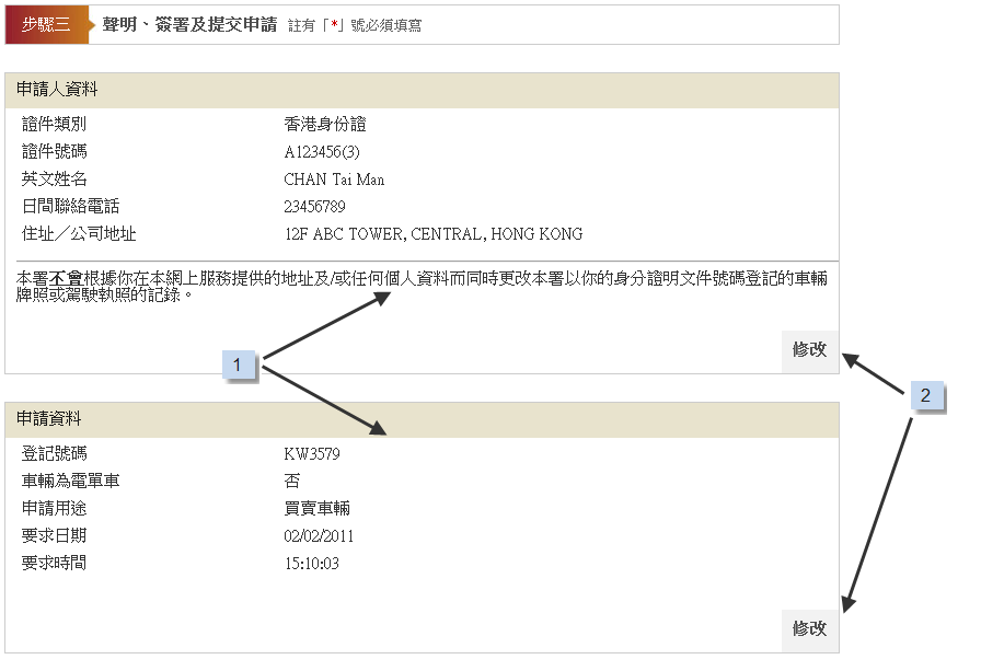 如有需要,請按「修改」更改資料。