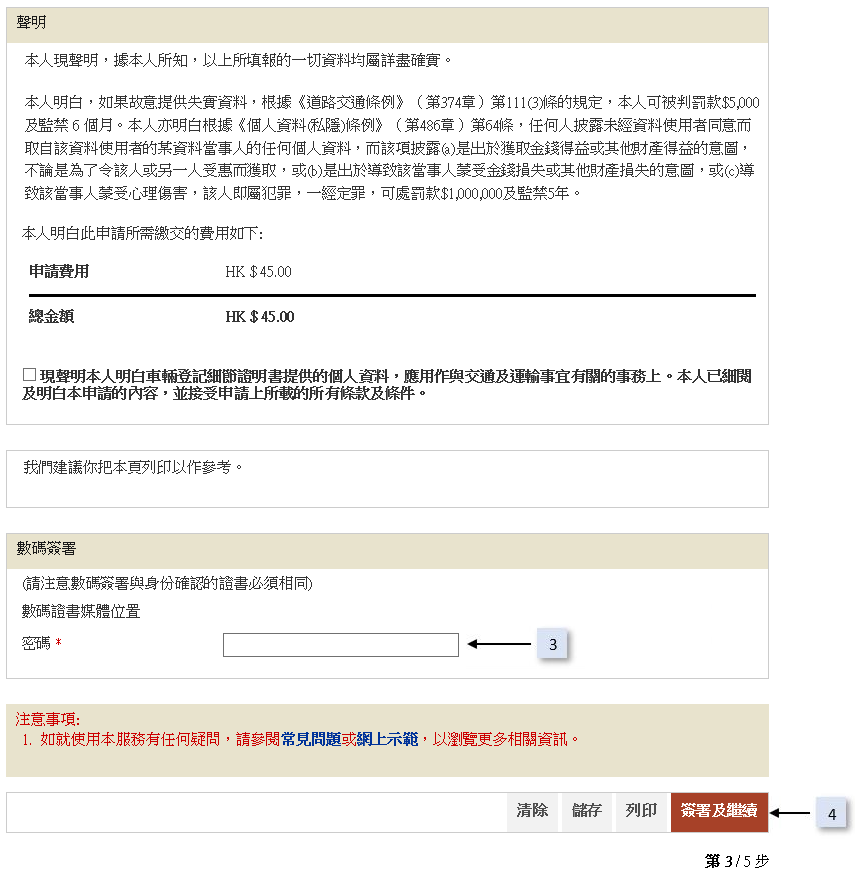 步驟三: 聲明、簽署及提交申請